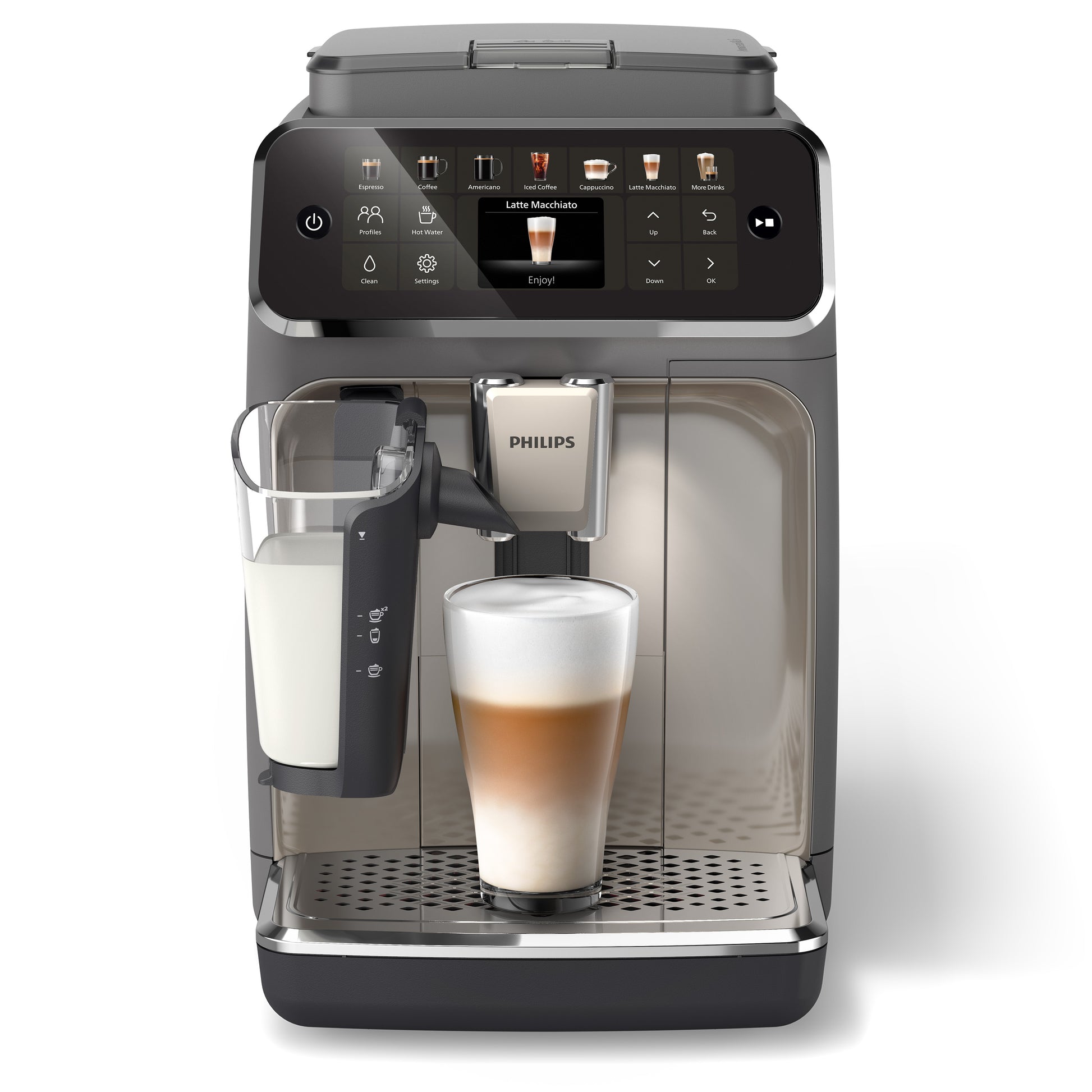 Enjoy café-quality coffee at home with the Philips 4400 Series, an automatic espresso machine with a built-in grinder that delivers true bean-to-cup coffee, ensuring fresh flavor in every sip. Choose from 12 customizable coffee recipes—from bold espressos to creamy lattes and refreshing iced coffees—each brewed at the perfect temperature with rich aroma and crema.